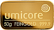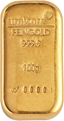 Deze baar weegt 100 gram en is geslagen in 99,99% puur goud.